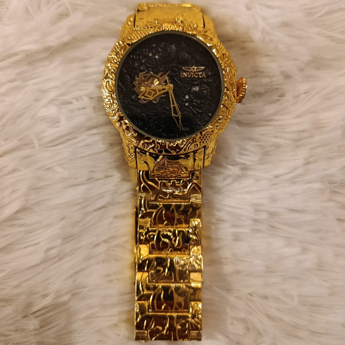 Keywords: Luxury Watch, Gold Invicta, Engraved, Men's Timepiece, Statement Jewelry.